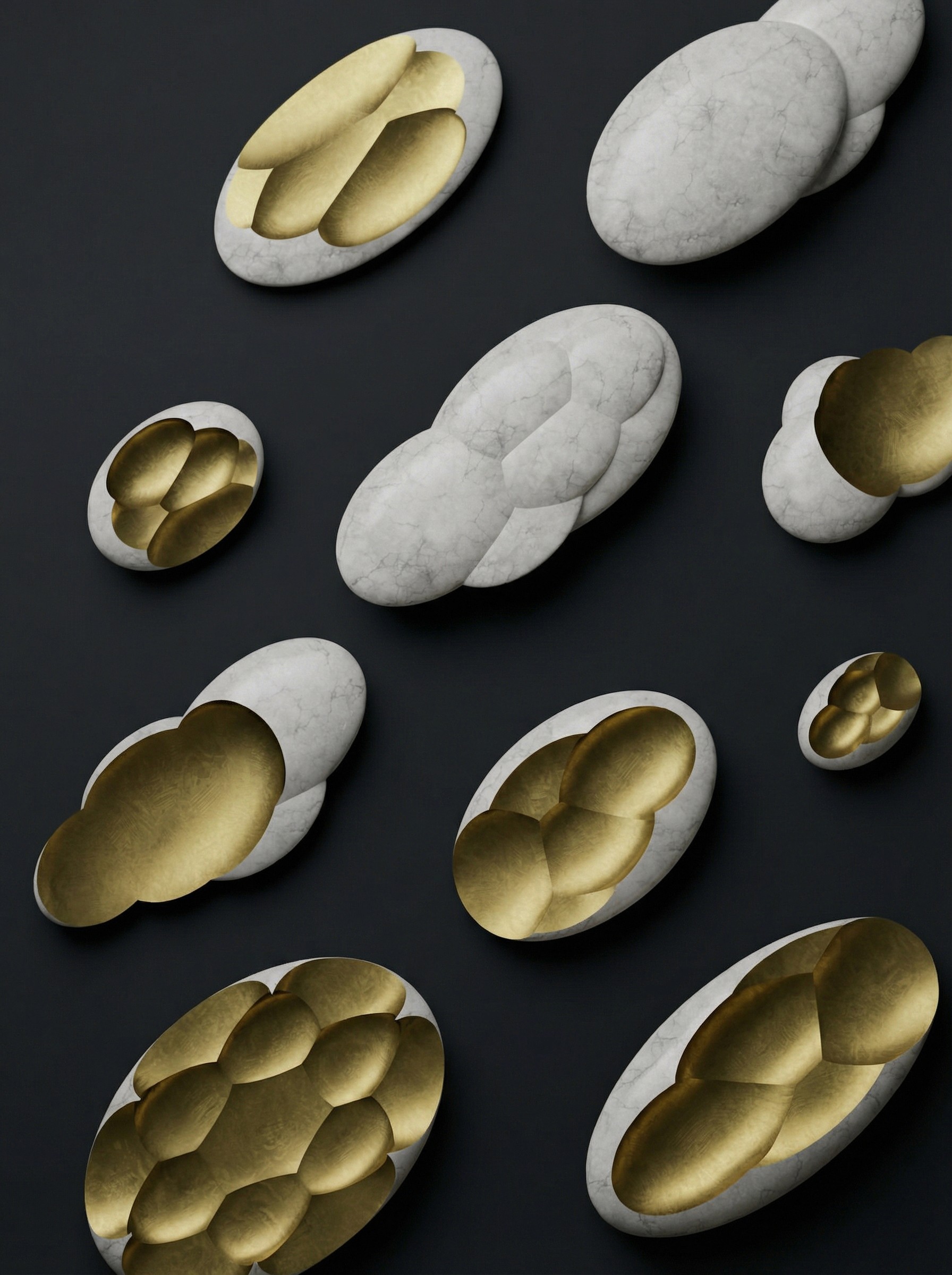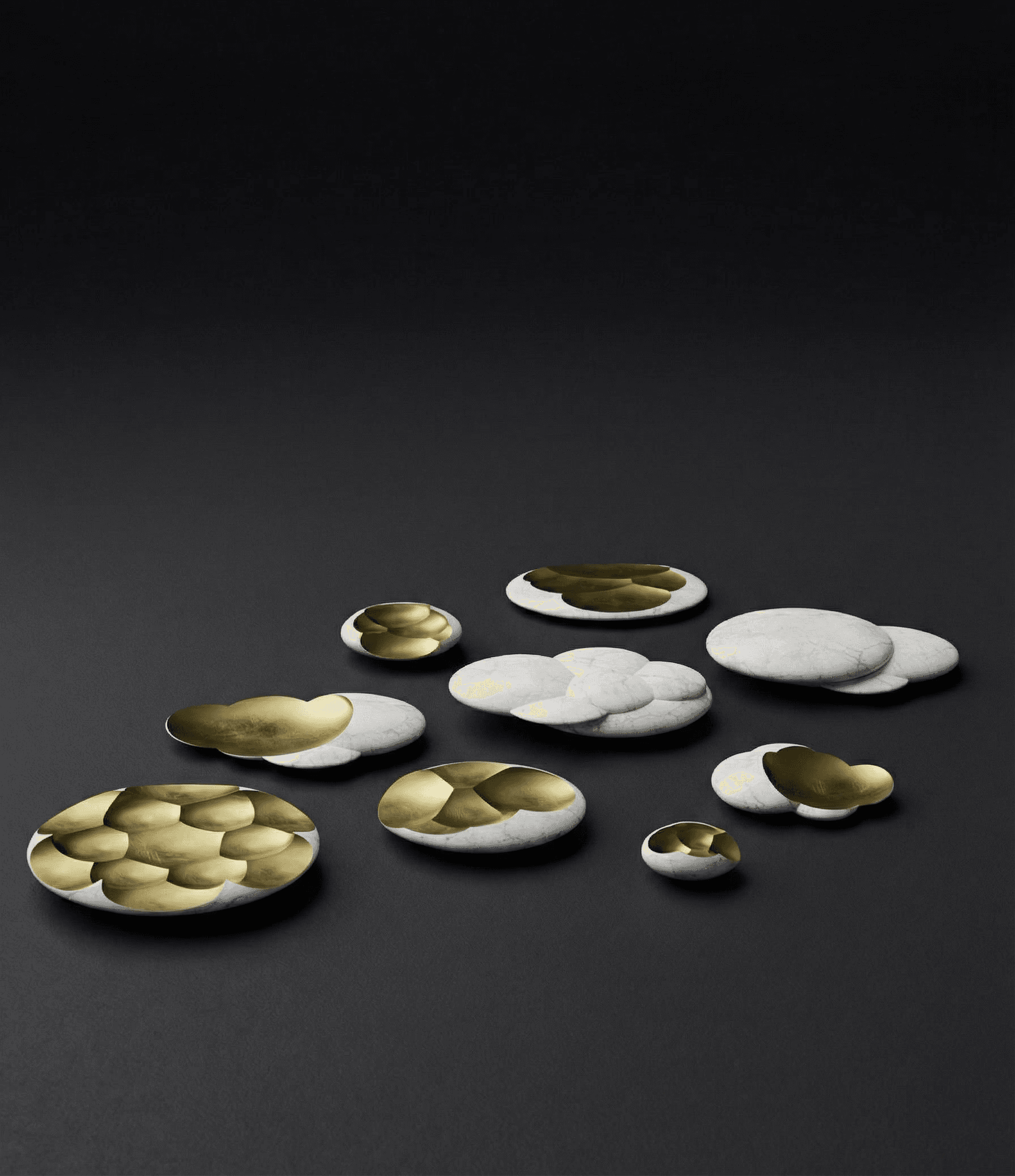 The Cloud Tableware series reimagines the act of dining through the lens of modularity and transformation. Each piece in the collection is defined by a precise, carved-out geometry, where voids and volumes intersect to create boolean formations that are both visually compelling and functionally innovative. The interlocking elements invite playful interaction, allowing for endless possibilities of assembly and reassembly—not only to serve their practical purpose but also to create evolving aesthetic compositions. As an aggregate, the tableware forms a cohesive visual language, its pieces fitting together to create solid, unified formations. Yet, the system remains inherently dynamic, enabling users to take apart, rearrange, and re-choreograph the set according to need or desire. This flexibility transforms the static act of setting a table into an ongoing process of creative expression, where functionality meets the poetic potential of form. Cloud Tableware speaks to a contemporary understanding of design as an open-ended system—one that adapts to shifting contexts and encourages active participation. The interplay between positive and negative space, between individual pieces and their collective whole, creates a dialogue of presence and absence, unity and individuality. By bridging these dichotomies, the series becomes more than a collection of objects; it is an ever-changing narrative of assembly, interaction, and differentiation.